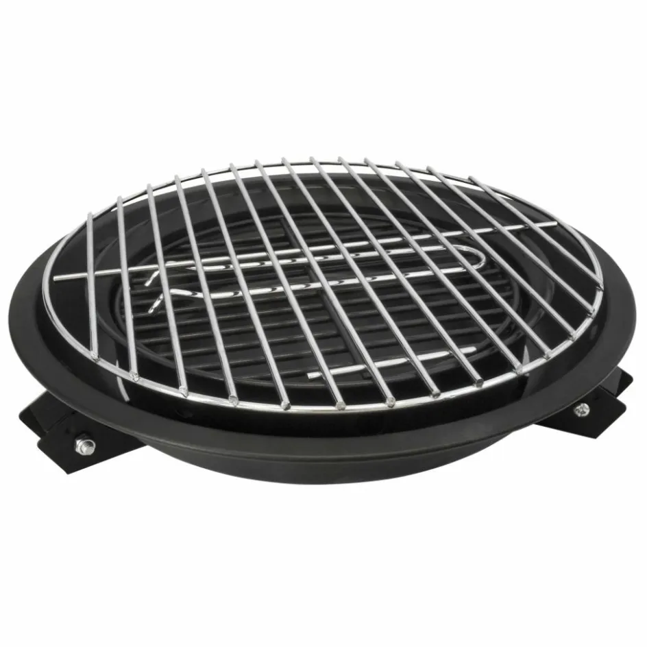 Grill aus beschichtetem Carbonstahl und mit verchromtem Grillrost. Durch herausnehmbare Einsätze auch über offenem Feuer und als Feuerschale verwendbar.