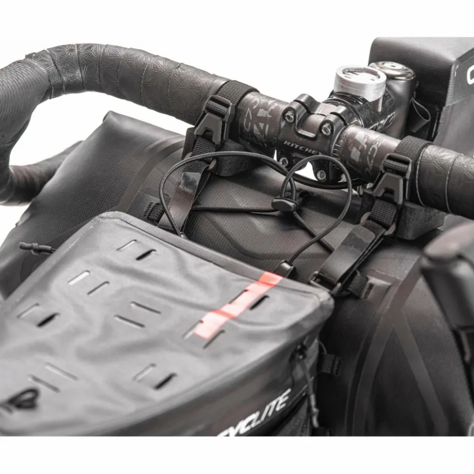 Diese leichte Tasche ist speziell auf Aero Bars ausgelegt und lässt sich dank vieler Schlaufen genau an die Bars anpassen. Alternativ kannst du die Tasche mit der Handle Bar Roll Bag / 01 kombinieren.