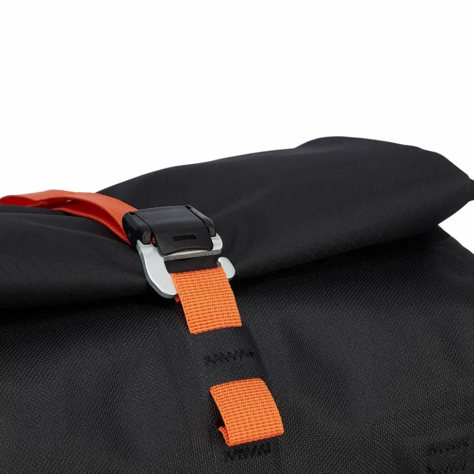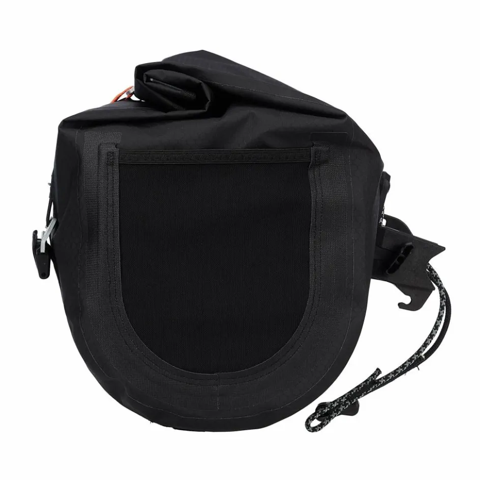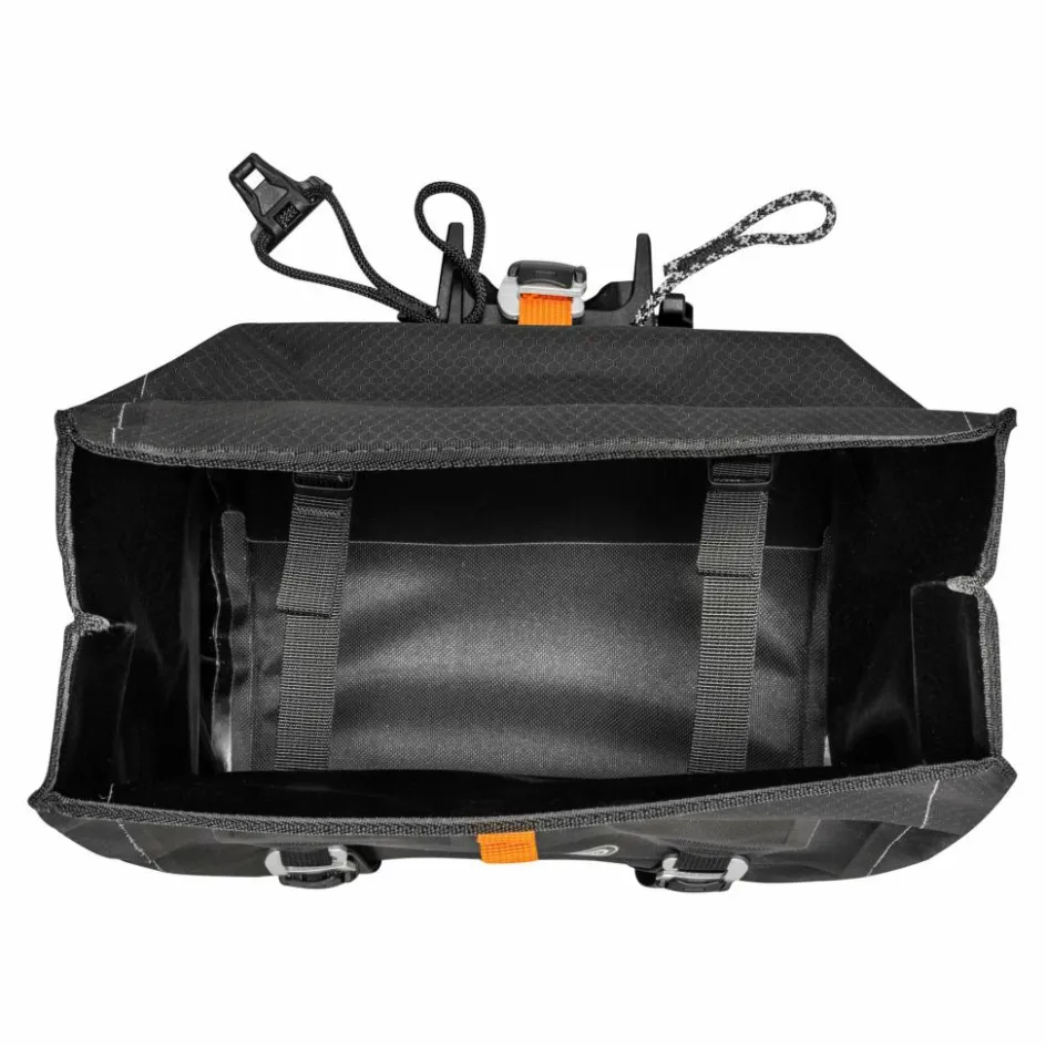 Dank Innenkompression und die durch den Rollverschluss variable Höhe wird das sichere Verstauen deines Equipments begünstigt. Zusätzlich unterstützen zwei Haken mit CamLock-Verschluss auf der Vorderseite die Komprimierung – und nehmen in Kombination mit Riemen zusätzliche Ausrüstung auf. Seitliche Steckfächer lassen sich für Riegel und Co. benutzen, an die du während der Fahrt einfach herankommst.