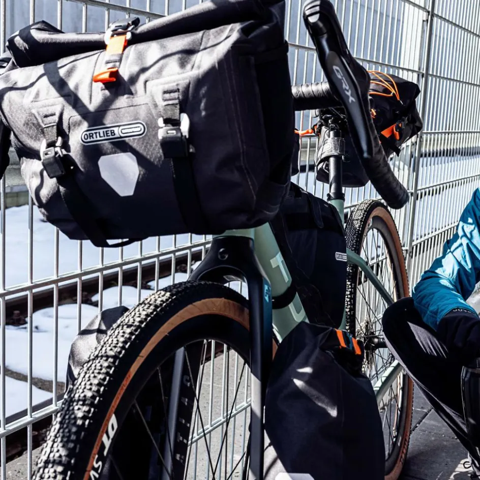 Das Handlebar-Pack QR glänzt erst einmal mit „Beinahe-Unzerstörbarkeit“ und zuverlässiger Wasserdichtigkeit dank Rollverschluss. Ortlieb in gewohnt hoher Qualität. Was neu ist, ist die Befestigungstechnik per Seil: Die hält sicher und ist auch sehr schnell zu lösen. Dafür steht das QR im Namen dieser Lenkertasche, das in Gänze „Quick Release“ bedeutet. Zusätzlicher Pluspunkt: An Lenker und Vorbau braucht es keinen Adapter und kein weiteres Bauteil, um das Handlebar-Pack QR sicher zu fixieren.