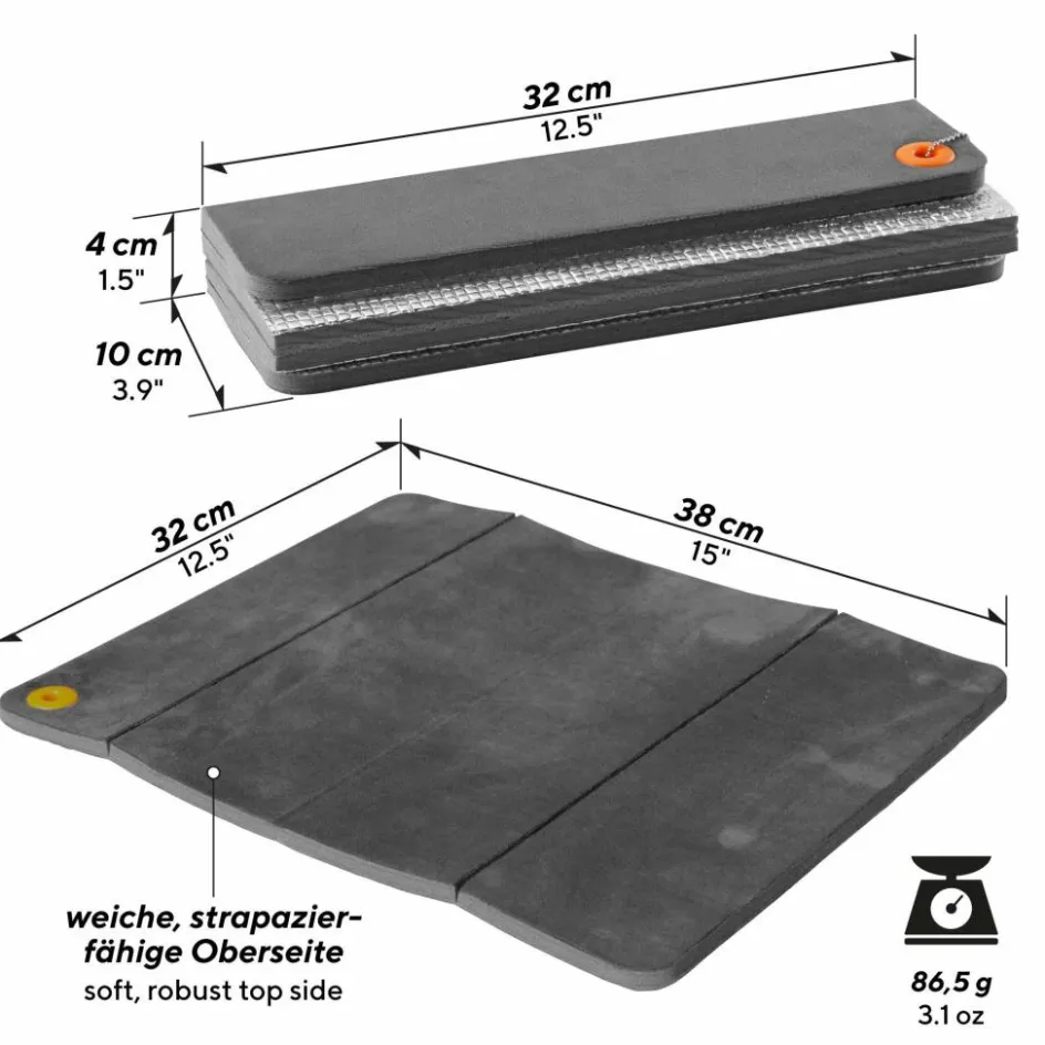 Das faltbare Sitzkissen passt auch in kleine Tagesrucksäcke und ermöglicht durch XPE Schaum das Sitzen auf nassen und schmutzigen Oberflächen. Die Fleece-Oberseite wärmt zusätzlich an kalten Tagen.