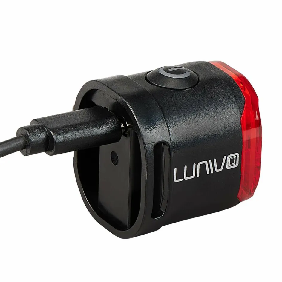 Lieferumfang: Rücklicht, Halter, Ladekabel, Anleitung