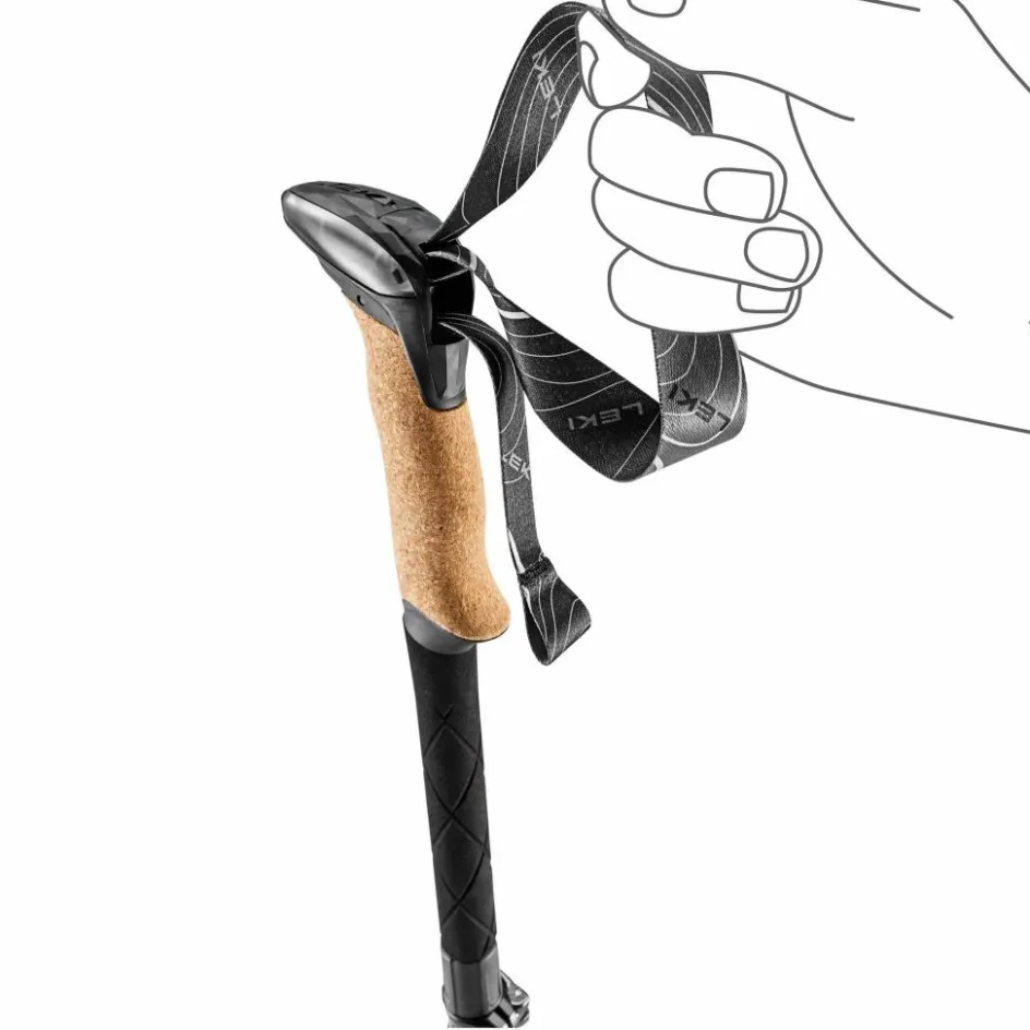 Mit dem Aergon Air hat Leki einen leichten Griff entwickelt, der dein Handgelenk beim Wandern optimal ausrichtet und auch bei langen Touren sehr angenehm ist. Bei steileren Abstiegen kannst du dich zudem bequem abstützen. Der Griffkopf ist rutschfest gummiert und leicht angewinkelt. Die lange Griffzone ermöglicht dir, den Stock bei Anstiegen schnell mal kürzer zu greifen. Auch die dünnen, weichen Handschlaufen lassen sich ganz einfach auf die passende Länge einstellen.