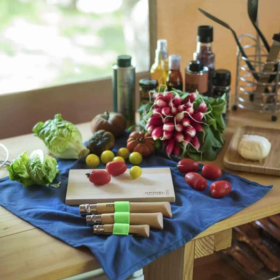 Mit dem Outdoor Set bist du unterwegs bestens für die Küche ausgerüstet. Es beinhaltet ein No. 12 mit Wellenschliff, No. 10 mit Korkenzieher, Schälmesser, Schneidbrett und Geschirrtuch.