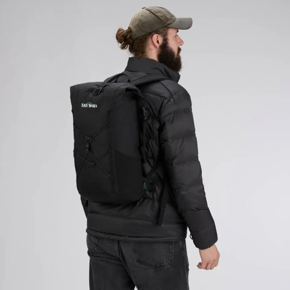 Das Hauptmaterial des Tagesrucksacks ist wasserdicht beschichtet und die Nähte sind getapt. So musst du dir beim Fahrradfahren, Pendeln oder im Alltag keine Sorgen um plötzliche Wetterumbrüche machen. Beachte bitte, dass der Rolltop-Verschluss mindestens drei Mal gerollt und mithilfe der Blitzschnallen festgezogen werden muss, um wirklich wasserdicht abzuschließen.