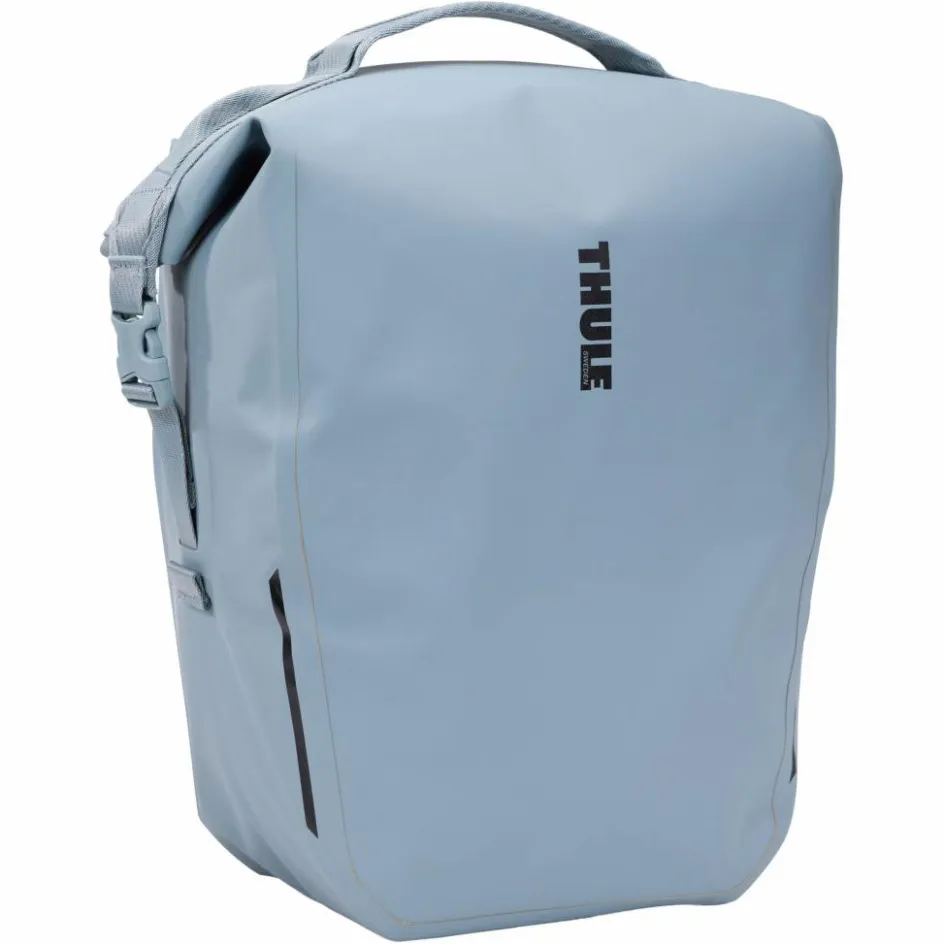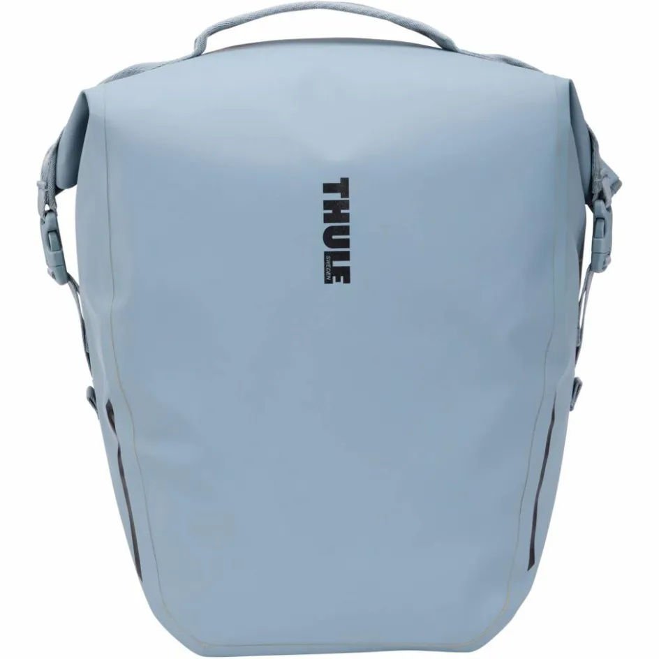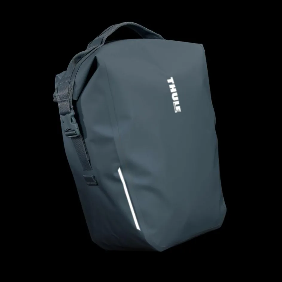 Wasserdichte Fahrrad-Packtasche mit freier Rückseite. Nur die doppelte textile Rückwand ist hier zu finden. Diese ist Teil des Thule InLock-Systems: Alle festen Bestandteile befinden sich am Rad.