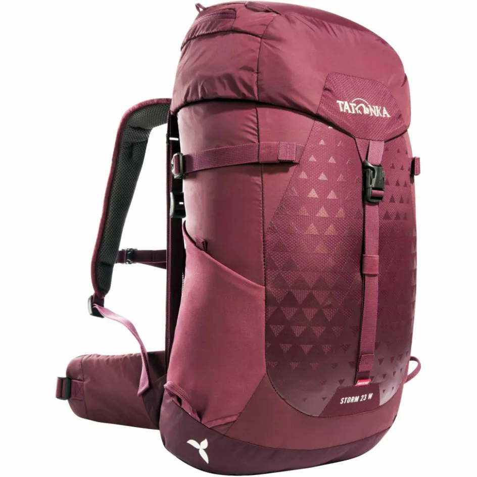 Der Storm 23 Women RECCO besitzt Netztaschen an den Seiten, Materialschlaufen auf dem Deckel, eine Wanderstockhalterung und eine Vorbereitung für ein Trinksystem und die Rucksack-Regenhülle schützt den Rucksack und seinen Inhalt zuverlässig vor Nässe.