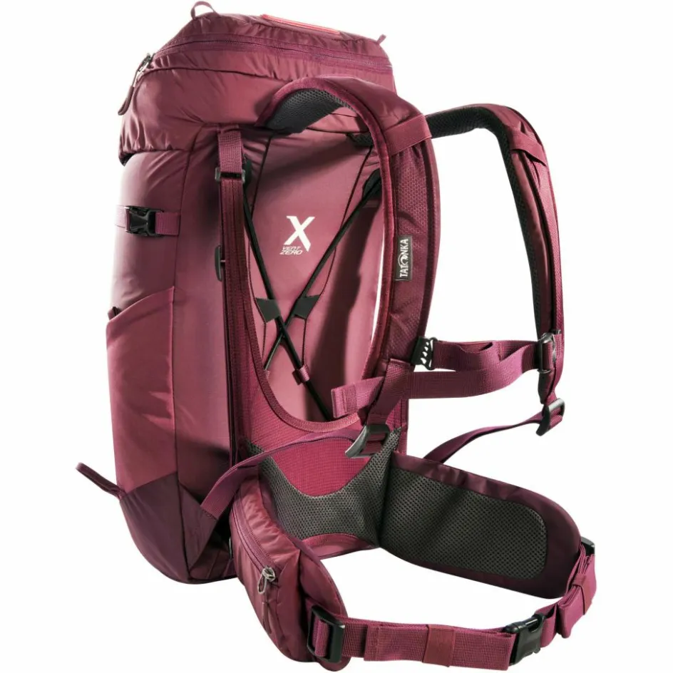 Ob gemütliche oder schweißtreibende Tour: Dieser Damen-Wanderrucksack ist ein erstklassiger Begleiter, denn sein hervorragend belüftetes Tragesystem sorgt jederzeit für einen trockenen Rücken. Es ist mit frauenspezifischen Schultergurten ausgestattet – sie führen seitlich an der Brust vorbei – und sitzt durch die gepolsterten Hüftflügel, die leichte Aufpolsterung im Lendenbereich und den verstellbaren Brustgurt komfortabel und fest am Rücken.