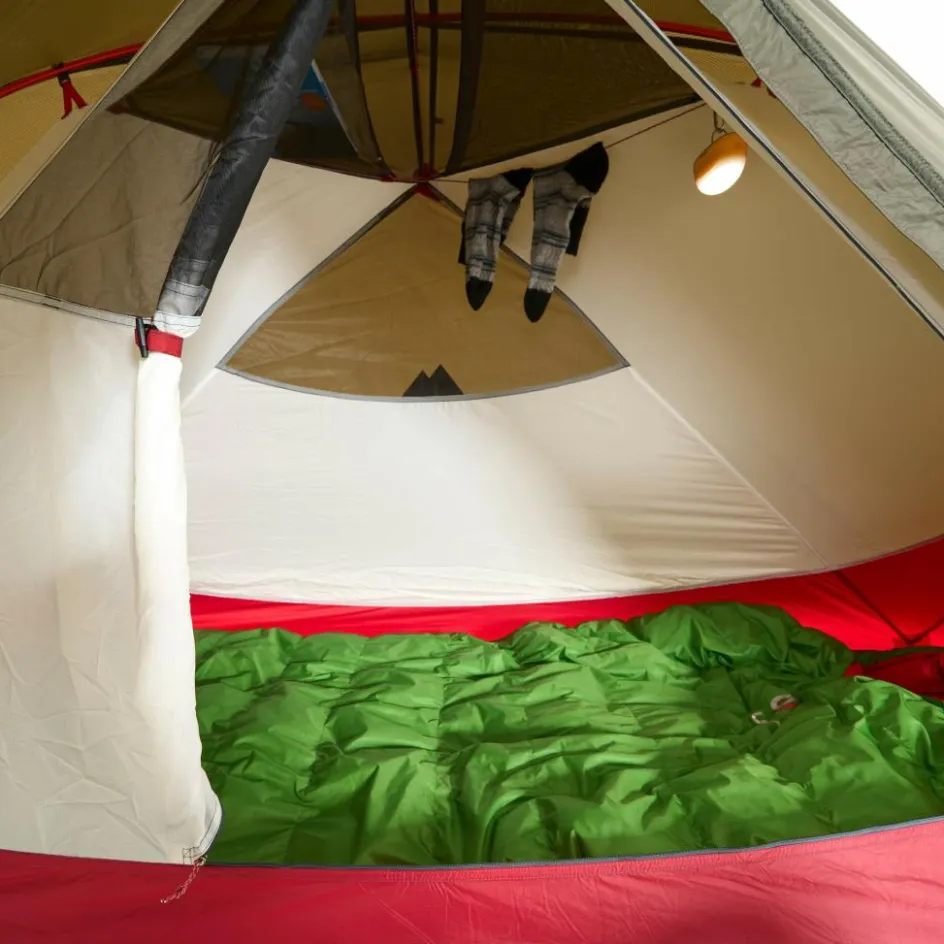 Das Innenzelt bietet dank des Querbogens viel Platz und eine Innenhöhe von 97 cm, was das Sitzen erleichtert. Die A-förmigen Gestängeenden sorgen für steile Zeltwände im Fuß- und Kopfbereich, wodurch vier Netztaschen für eine bessere Organisation zur Verfügung stehen. Zwei Seitentaschen und zwei Deckentaschen bieten Platz für Ausrüstungsgegenstände, während in der Zeltdecke mehrere gespannte Wäscheleinen das Trocknen feuchter Kleidung ermöglichen.