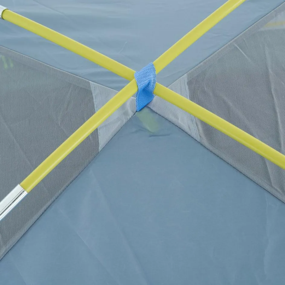 Der Aufbau gestaltet sich denkbar einfach. Nachdem das Innenzelt einfach an das Gestänge geclipt wird, wird das Außenzelt übergeworfen. Dank dieser Konstruktion hast du sogar die Möglichkeit, das Außenzelt in tropischen Nächten komplett wegzulassen. Zudem kann das Zelt mit nur zwei Heringen aufgestellt werden, sodass du bei der Zeltplatzwahl beispielsweise beim Paddeln an felsigen Ufern etwas flexibler bist.