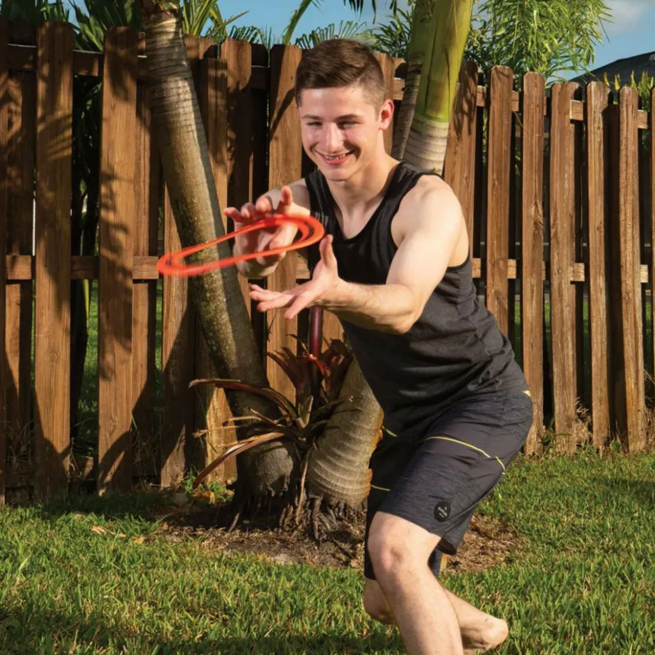 Schon mit geringem Kraftauswand geworfen, fliegen die „Aerobie“-Ringe aufgrund des minimalen Luftwiderstands über große Distanzen und landen dabei punktgenau. Abgerundete, weiche Kanten erleichtern das Fangen.