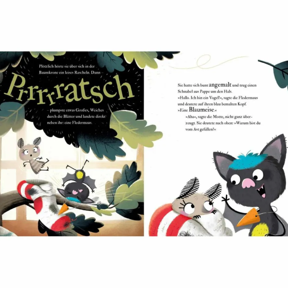 Auf Dauer ist das ganz schön anstrengend. Erst als all ihre Versuche scheitern, und sie – zutiefst deprimiert – eine Fledermaus trifft, gerät sie ins Grübeln: denn die Fledermaus wäre nichts lieber als eine Blaumeise …