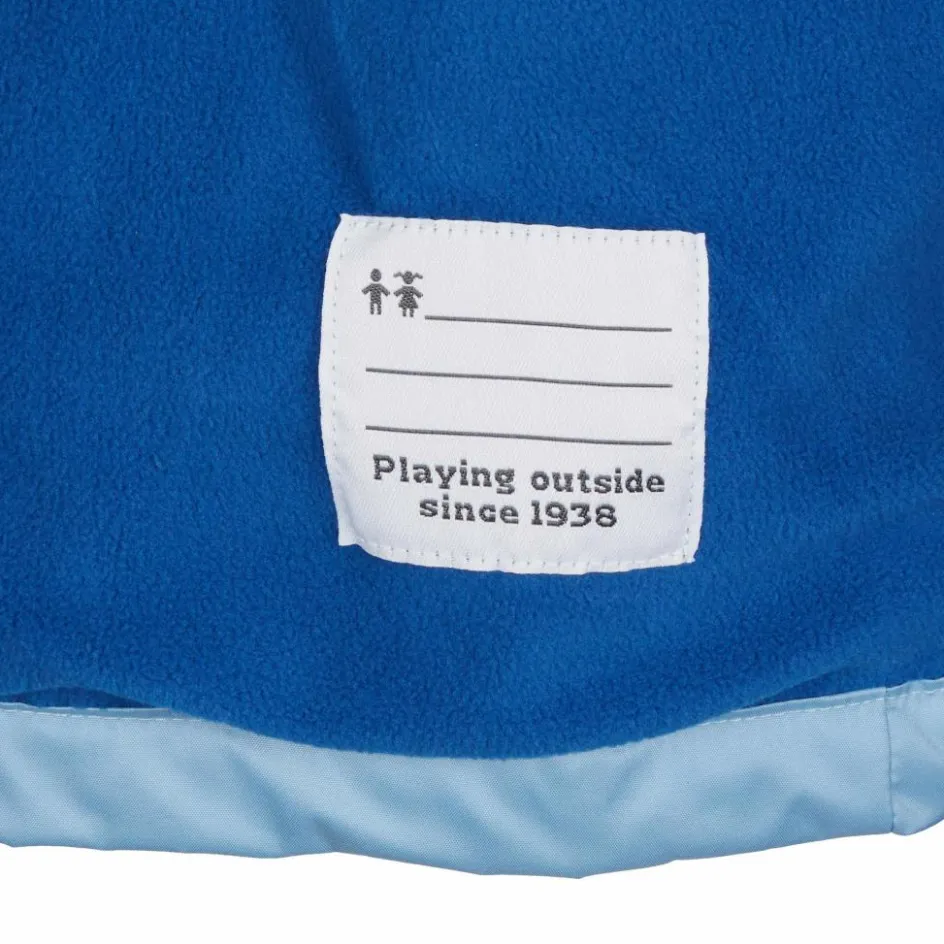 Die Kapuze lässt sich per Klettverschluss am Hinterkopf auf die passende Weite einstellen. Der Front-Reißverschluss ist unterlegt und mit einem Kinnschutz ausgestattet. Dadurch piekst der Reißverschluss nicht unangenehm am Hals. Zwei Einschubtaschen bieten Platz für alle Kleinigkeiten, die unterwegs schnell griffbereit sein sollen. Ein eingenähtes Namensschild sorgt für klare Besitzverhältnisse in der Kita oder Schule.
