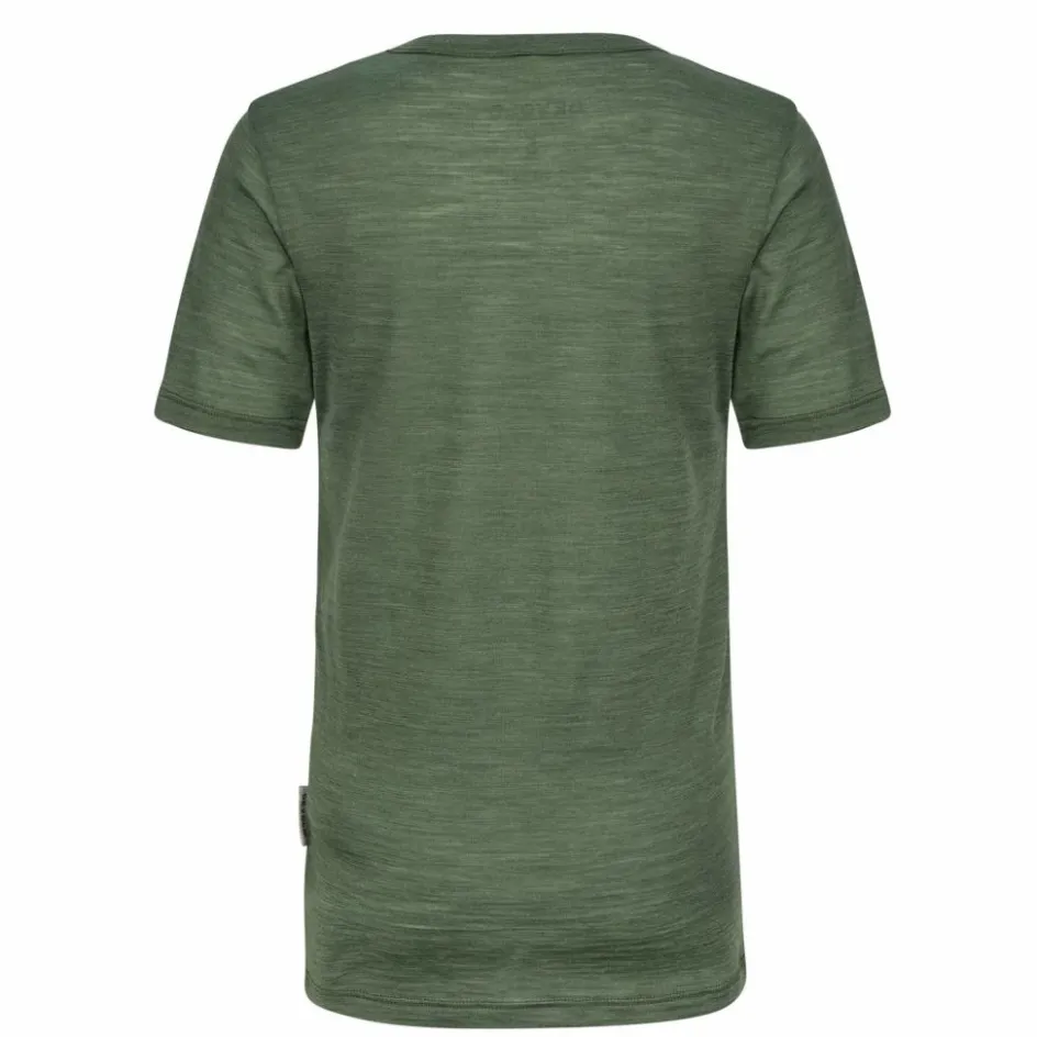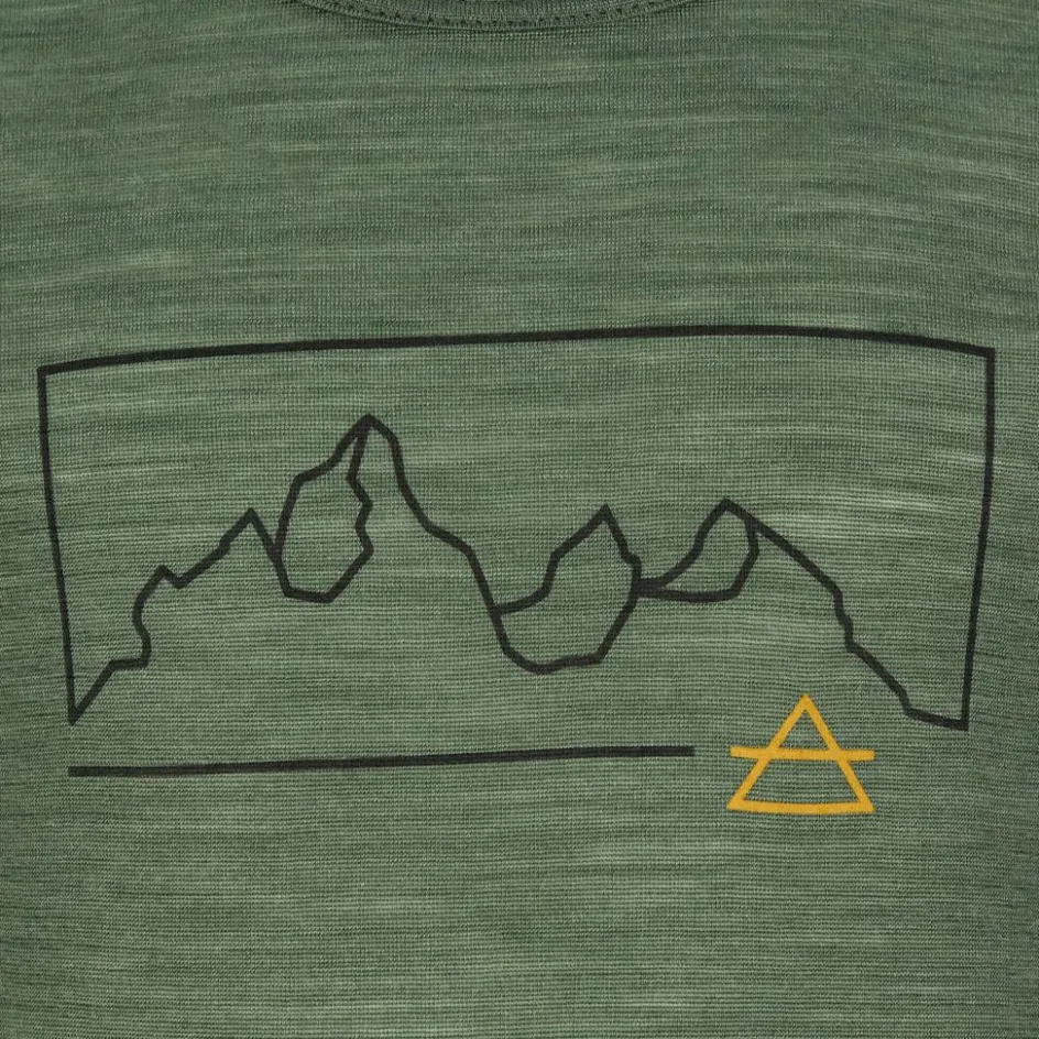 Das dünne Shirt (130 g/m²) ist perfekt für warme Sommertage, wozu auch das hochwertige Materialgemisch beiträgt. Der Mix aus Merinowolle und Lyocell liegt ultraweich und leicht kühl auf der Haut. Noch dazu ist die Wolle von Natur aus geruchshemmend. Ein großes Plus, wenn deine Kiddies bei schweißtreibenden Temperaturen die Natur entdecken. Die legere Optik und der bequeme Komfort und die feine Bergkulisse wird auch auf dem Pausenhof seinen Anklang finden.