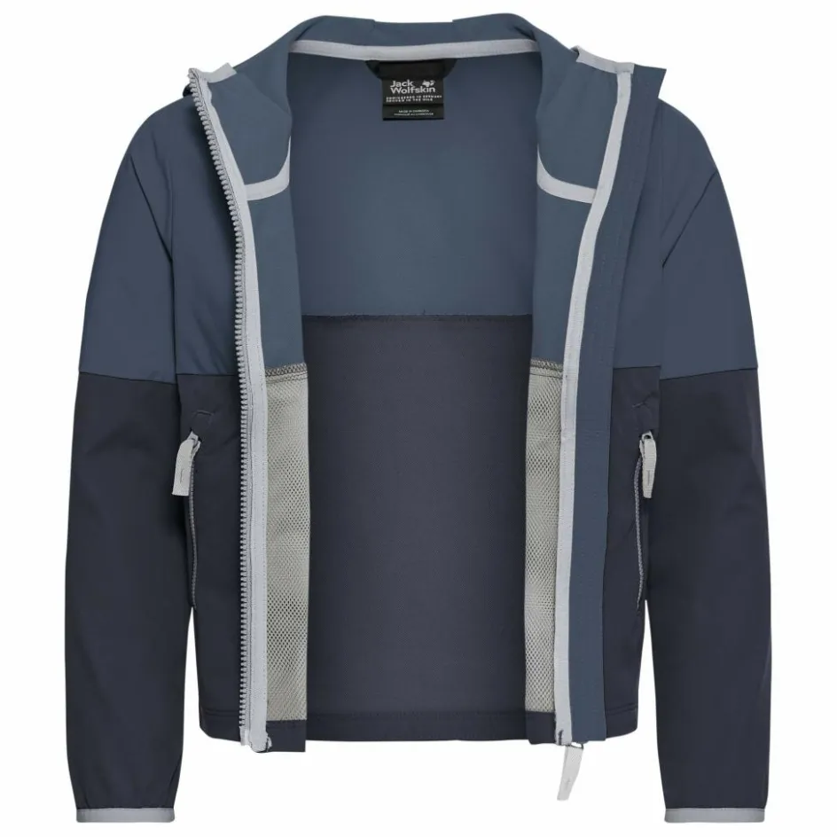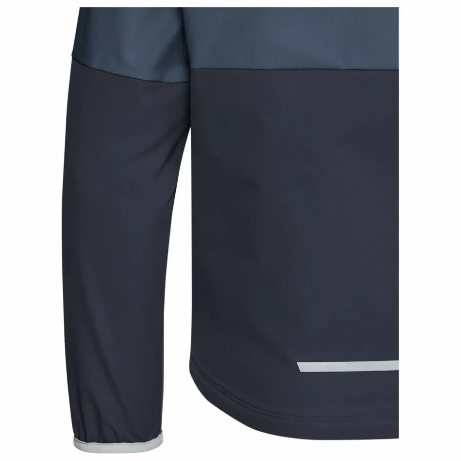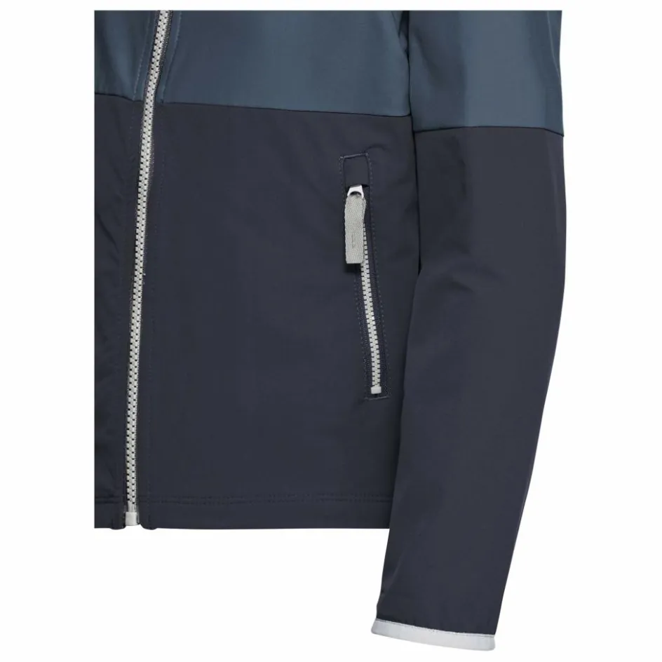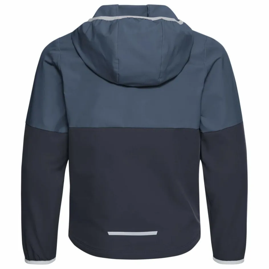 Kommt eine kühle Brise auf, steht eine festverbundende Kapuze mit Elastikeinfassung zur Verfügung. Elastische Ärmelbündchen unterstreichen die Gemütlichkeit der Softshelljacke. Zwei mit einem Meshfutter versehene Reißverschlusstaschen bieten Platz für Smartphone und anders Kleinigkeiten. Bei schummrigen Lichtverhältnissen tragen reflektierende Designelemente zur Sichtbarkeit deiner Kinder bei.