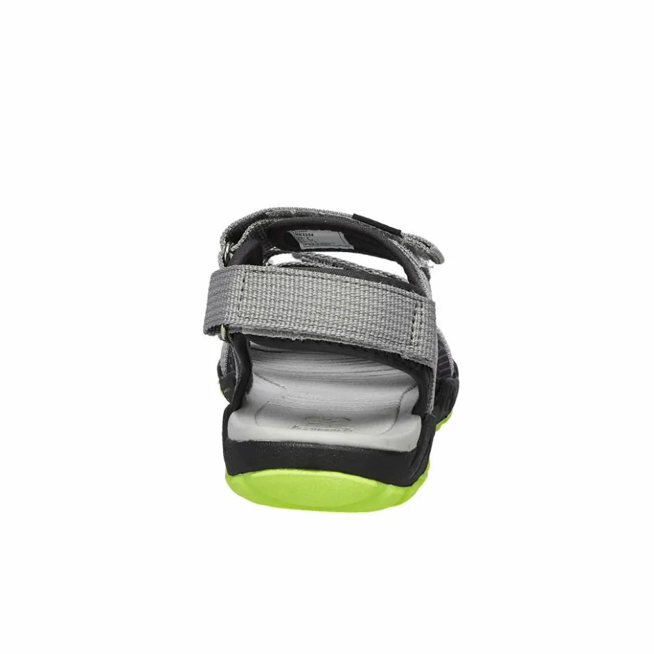 Absolut gelungen und schlicht und ergreifend praktisch. Mit drei regulierbaren Klettriemen, rutschhemmendem Fußbett und griffigem Sohlenprofil.