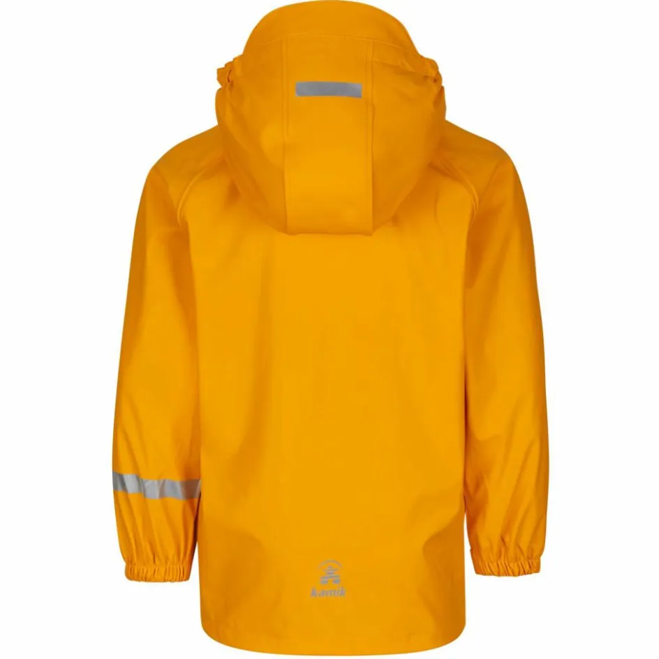 Die Kapuze lässt sich einfach abtrennen, damit sie bei trockenem Wetter nicht im Weg ist. Die Klettverschlüsse an den Ärmelbündchen können so eingestellt werden, dass kein Regen in die Ärmel rinnen kann. Praktisch auf dem Weg in die Schule oder in den Kindergarten bei schlechten Sichtverhältnissen: Die Jacke ist rundum mit reflektierenden Designelementen ausgestattet.