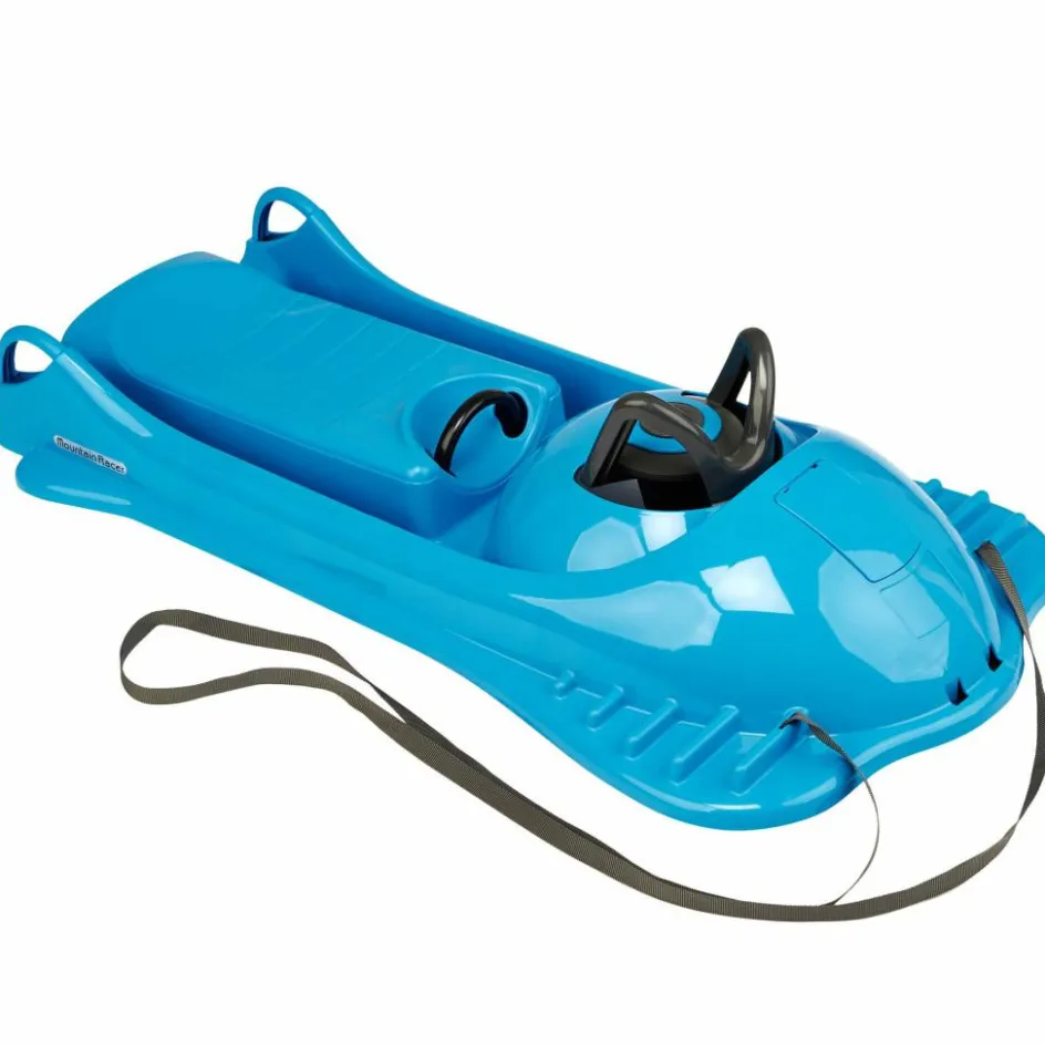 Der sportliche Rennbob für Kinder ab 6 Jahren ist mit einem patentierten Lenksystem ausgestattet. Besonders bequem daran ist, dass der Lenkbug vorne erhöht ist. In Kombination mit dem ebenfalls etwas erhöhten Sitz und Profilen für die Füße können die Kids so mit gutem Halt und in einer angenehmen Sitzposition ins Rennen gehen.