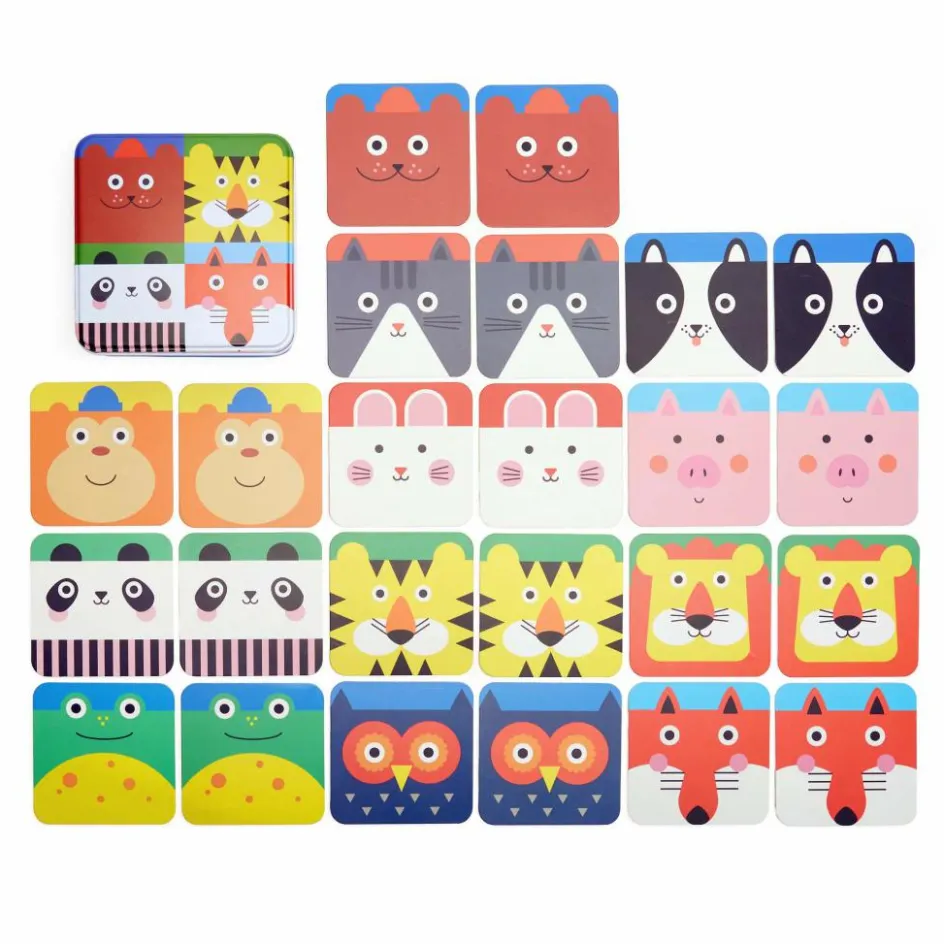 Das richtige Paar finden, auch unterwegs in der Bahn oder auf der Wiese im Park. Das Matching Memory Game kommt in einer praktischen Metalldose und kann so problemlos überall mit hingenommen werden.