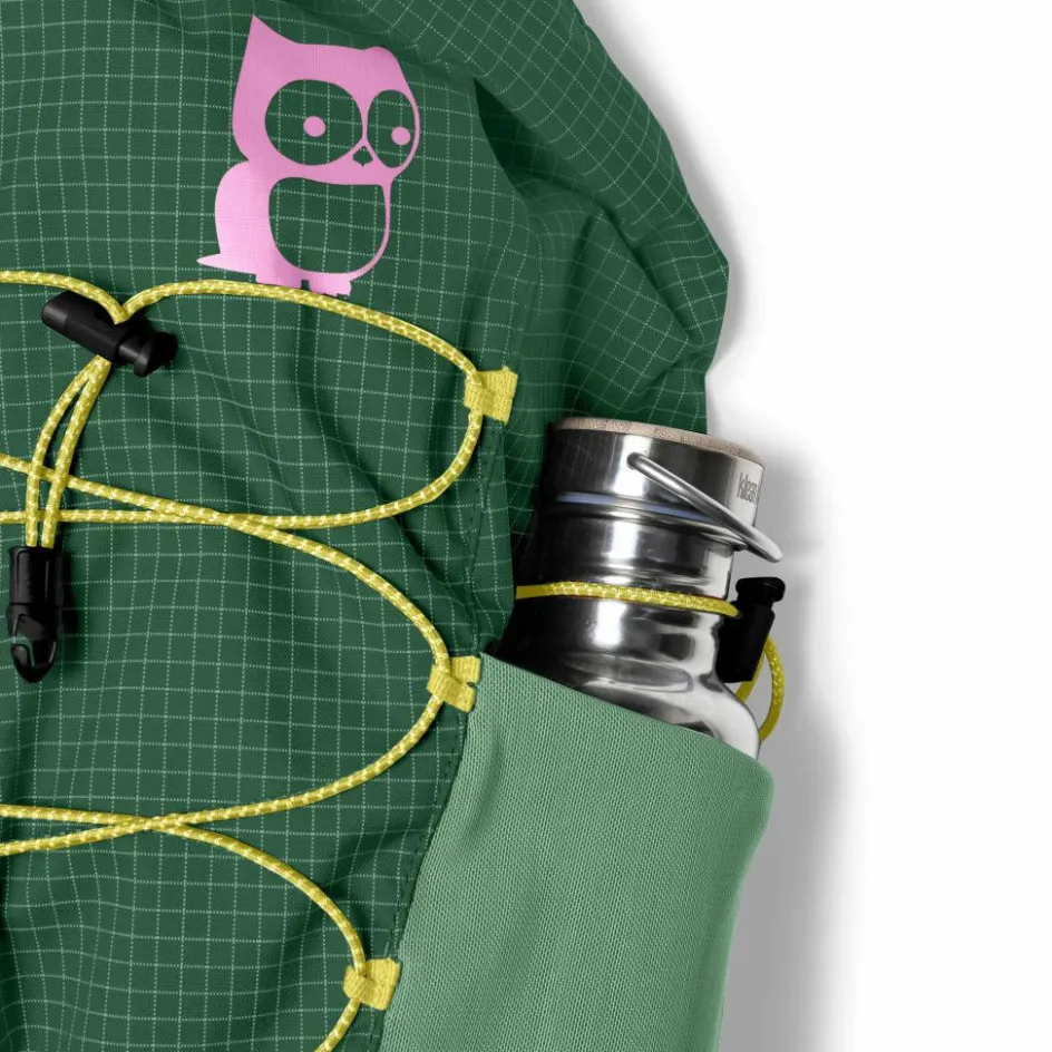 Der Eon Rucksack 14L ist gemacht für kleine Outdoor-Fans, die am liebsten in Pfützen springen und Regenbögen hinterherjagen. Denn dank wasserdichtem Material, verschweißten Nähten und Rolltop-Verschluss sind Brotzeit und Fleecejacke auch bei Schmuddelwetter zuverlässig vor Nässe geschützt. Kommt die Sonne wieder hervor, kann die nasse Regenbekleidung (oder ein Sitzkissen) außen an der elastischen Kordel befestigt werden. So bleibt der Inhalt des Rucksacks schön trocken. Und wenn der Durst sich meldet, ist die Trinkflasche dank seitlicher Steckfächer stets schnell zur Hand.