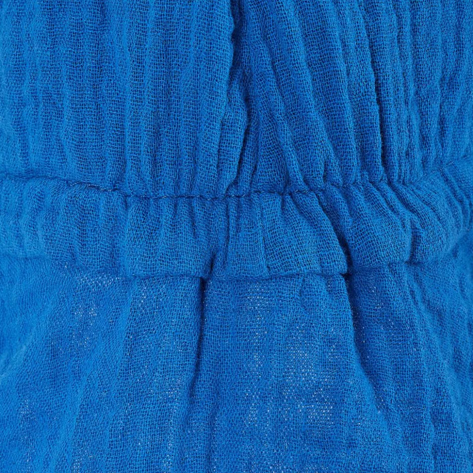 Durch die typische Musselin-Struktur ist der Sonnenhut angenehm weich, atmungsaktiv und saugfähig. Die für den Musselin-Stoff verwendete Baumwolle stammt aus kontrolliert biologischem Anbau. Der Schirm schützt das Gesicht vor blendender Sonne, während der lange Latz den Nacken und die Schultern bedeckt hält. Ein Gummizug am Hinterkopf sorgt für einen bequemen und sicheren Sitz. Das weiche Kinnband verhindert, dass der Hut bei windigem Wetter am Strand vom Kopf gepustet wird.