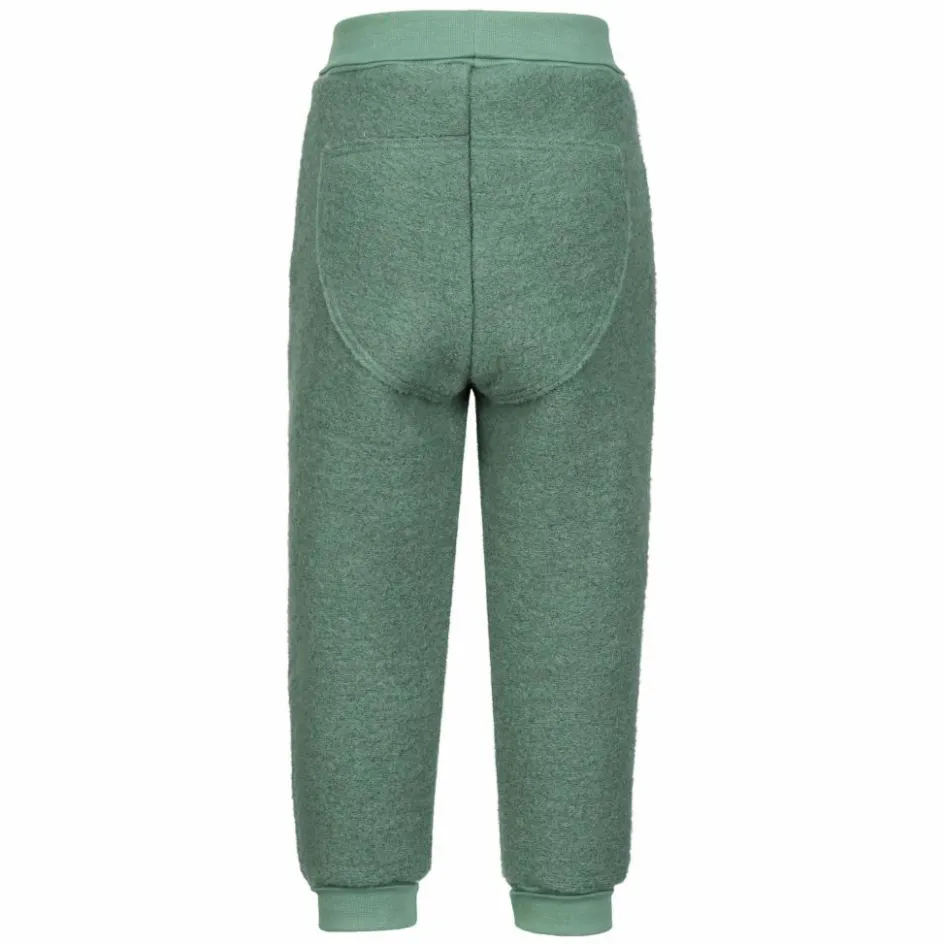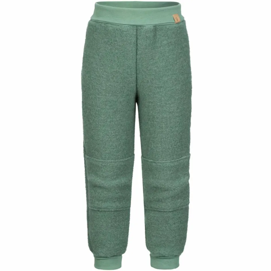 Durch die Walk-Struktur wird die Körperwärme gut eingeschlossen, so hält die Hose bei kühlem Wetter angenehm warm. Dank des hohen Anteils an Schurwolle (aus artgerechter Tierhaltung) wirkt das Material außerdem feuchtigkeitsleitend und temperaturregulierend. Weiterer Vorteil: Wolle wärmt auch im feuchten Zustand. So ist es nicht weiter schlimm, wenn die Hose einen kleinen Schauer abbekommen hat oder beim Spielen auf nassen Untergründen feucht geworden ist. Die Wolle wurde mit Baumwolle kombiniert, dadurch hat die Hose einen weicheren Griff. Das dehnbare Material, der lockere Schnitt mit vorgeformten Kniepartien und die stark elastischen Bündchen sorgen für einen besonders bequemen Sitz und uneingeschränkte Bewegungsfreiheit.
