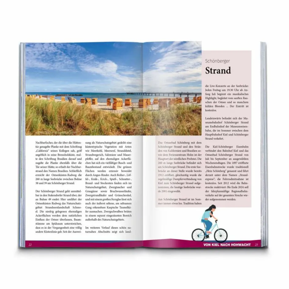 Dieser Band versammelt die 1000 schönsten Kilometer am Wasser an Flüssen wie der Weser, der Mosel, dem Rhein oder der Donau, an der Ostseeküste sowie an Seen, gut verteilt über ganz Deutschland. Die 20 Touren haben zwischen 22 und 85 Kilometer. So lassen sich die längeren, abhängig von der eigenen Kondition, auch zu einer zweitägigen Wochenendausfahrt ausweiten.
