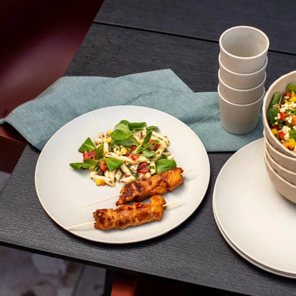 Die Club-Serie besteht aus stapelbarem Geschirr, das optisch auf jeden Tisch passt. Ob Grillparty, Campingtrip oder Van-Abenteuer, das Geschirr macht alles mühelos mit. Dabei darf es auch gerne ruppig zugehen, denn das biobasierte Material ist bruchsicher und sehr robust. Nach der Benutzung lässt es sich problemlos in der Spülmaschine reinigen.