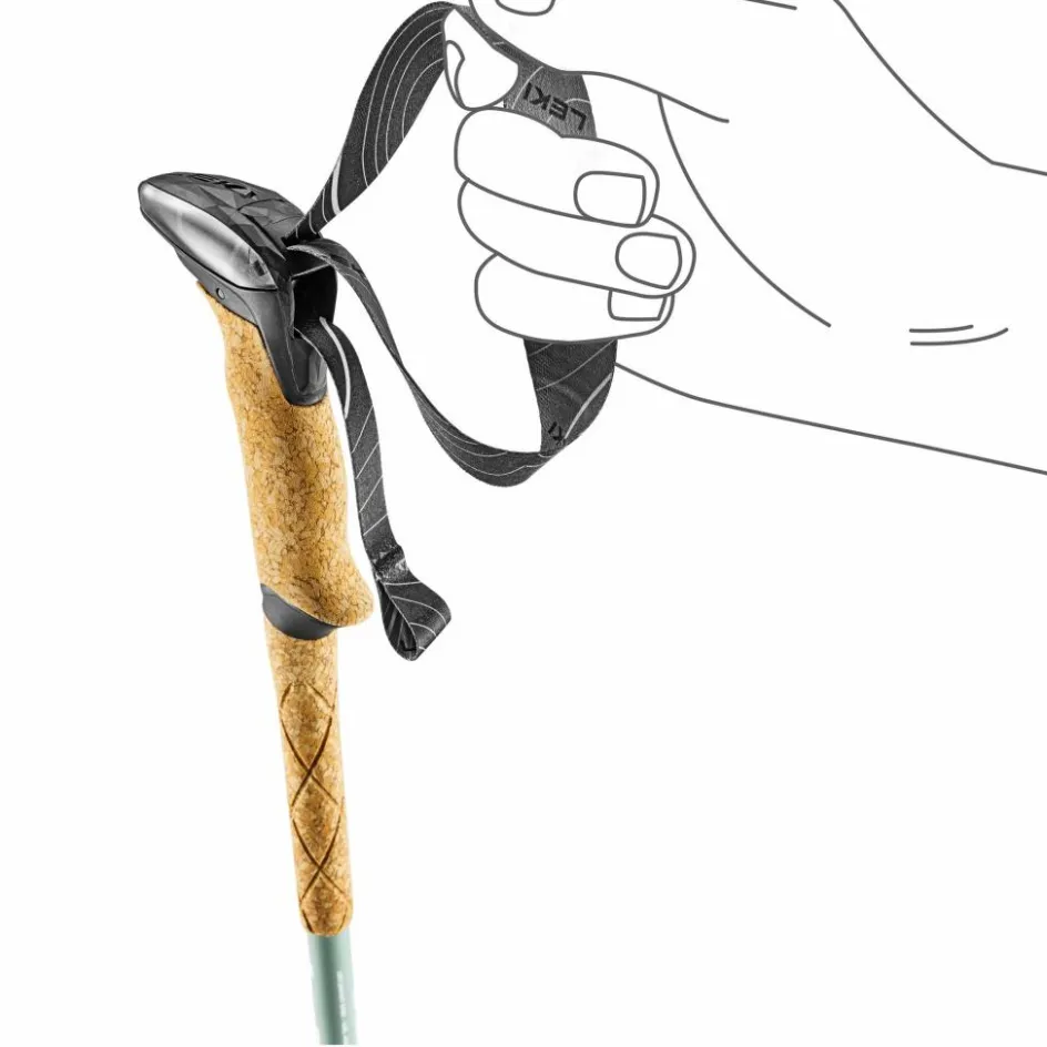 Mit dem Aergon Air hat Leki einen leichten Griff entwickelt, der dein Handgelenk beim Wandern optimal ausrichtet und auch bei langen Touren sehr angenehm ist. Bei steileren Abstiegen kannst du dich zudem bequem abstützen. Der Griffkopf ist rutschfest gummiert und leicht angewinkelt. Die verlängerte Griffzone ermöglicht dir, den Stock bei steilen Anstiegen oder Traversen schnell mal kürzer zu greifen. Auch die dünnen, weichen Handschlaufen lassen sich ganz einfach auf die passende Länge einstellen.
