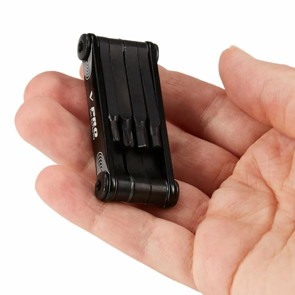 Innensechskant, Innensechsrund, Kreuzschlitz: Sieben gängige Werkzeuge in einem, die am Fahrrad häufig zum Einsatz kommen. Insofern ist dieses Tool unterwegs sehr praktisch.