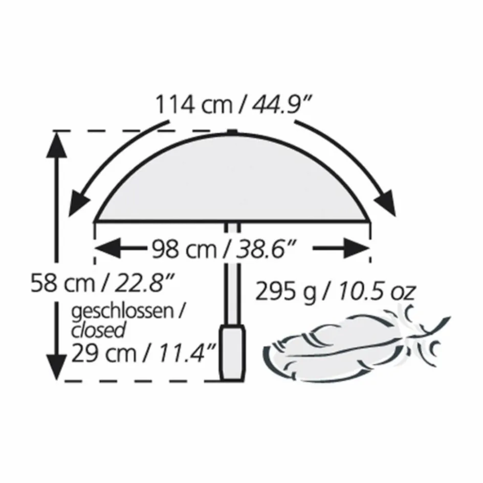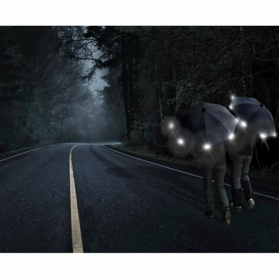 Der Schirm besitzt an jedem Segment reflektierende Elemente die auch aus weiter Entfernung gut sichtbar sind. Das ist besonders bei schlechter Sicht enorm hilfreich und erhöht die Sicherheit im Straßenverkehr. Natürlich lässt er sich dadurch auch im dunklen Rucksack schneller finden.
