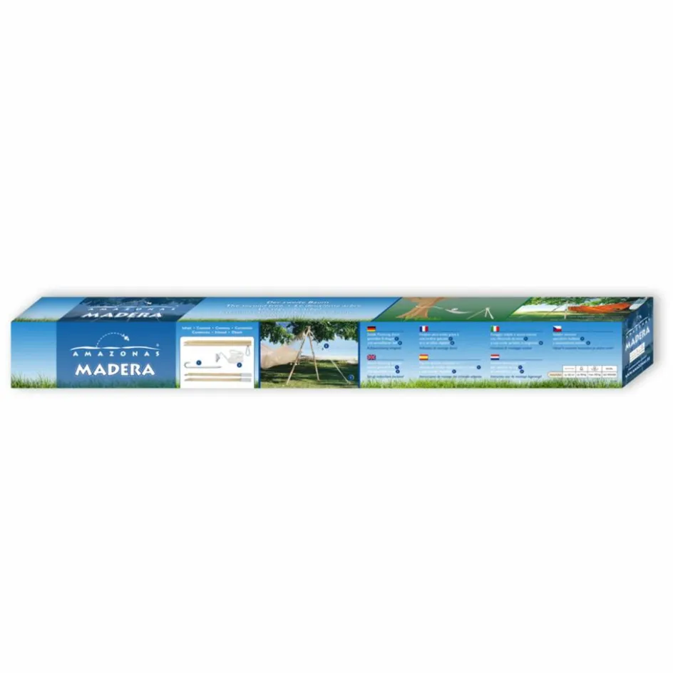 Das Gestell Madera macht dir die Nutzung deiner Hängematte sehr viel einfacher und unabhängiger. Ein Baum, ein fester (Zaun-)Pfosten oder Ähnliches reicht dir zukünftig aus, um dich gemütlich in deine Hängematte zu legen. Das Hängemattengestell Madera ist so ausgelegt, dass es sich mit allen Amazonas-Hängematten kombinieren lässt. Das Gestell lässt sich auch klein zusammenlegen und dadurch gut transportieren.