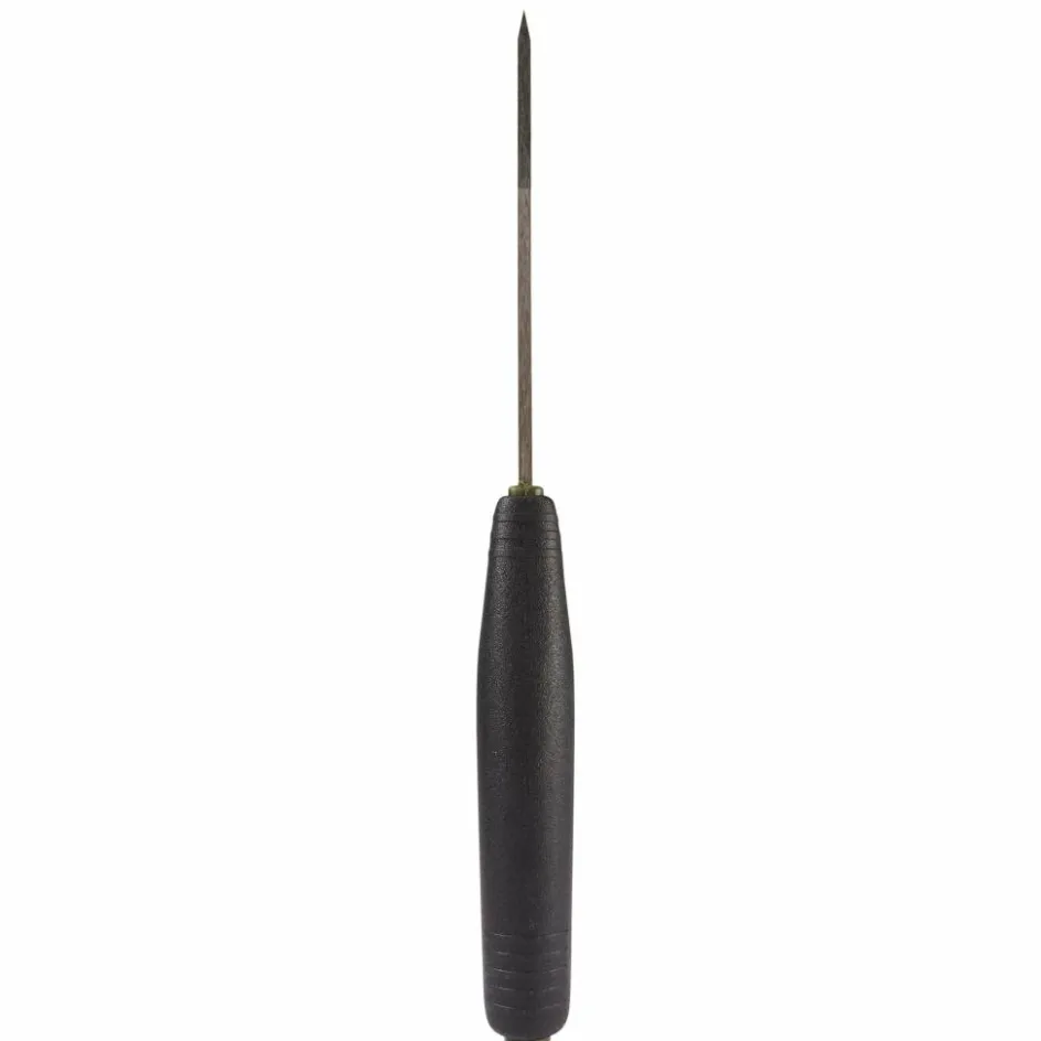 Der Griff mit den ausgeprägten Fingermulden und der angedeuteten Parier-Stange bietet festen Halt. Der angeraute Kunststoff liegt dabei nicht nur angenehm in der Hand, er verhindert auch bei Feuchtigkeit ein Wegrutschen des Messers.