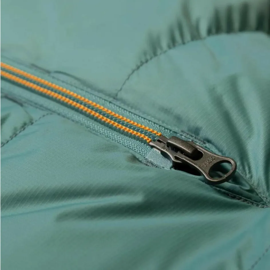 Mountain Equipments bewährte EXL Technologie trägt zu einer höheren Wärmeleistung bei, da sich das Innenmaterial des Schlafsacks näher an den Körper anlegt und somit unnötige Lufträume reduziert werden. Gleichzeitig erhält die Daune mehr Platz für maximalen Loft. Der lange Reißverschluss mit Gemini System verhindert Wärmeverluste in diesem kritischen Bereich und ist verstärkt, um ein Einklemmen des Zippers zu verhindern. Der flache, magnetische Lode Lock Verschluss und die Kordelzüge am Wärmekragen lassen sich auch in der Nacht gut bedienen.
