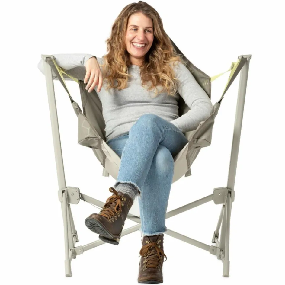 Sitzen und schaukeln gleichzeitig: Im Stargaze Evo-X sitzt es sich superkomfortabel. In diesem Campingstuhl kannst du dich bequem zurücklegen und relaxen. Ganz einfach aufbaubar in einem Schwung!