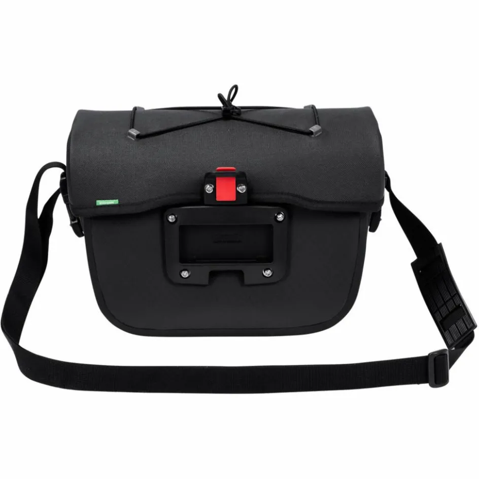 Die Vaude Aqua Box in der sehr nachhaltigen Variante: Hier bekommst du die praktische Lenkertasche mit durchweg recyceltem Material und PVC-freier, wasserdichter PU-Beschichtung.