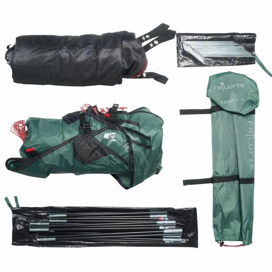 Barry 3, Gestänge, Heringe, 7 Abspannleinen, Packbeutel