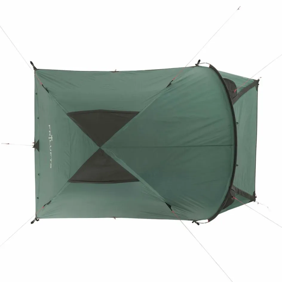 Viel Platz für bis zu 3 Personen durch die großzügige Innenzeltbreite. In der Apsis lassen sich Gepäck und Rucksäcke verstauen. Die Lüfter in Zelthimmel und Apsis sorgen bei warmen Temperaturen für optimale Luftzirkulation. Wem das im Sommer noch nicht reicht, der kann die Zeltrückwand im unteren Bereich über die komplette Länge nach oben wickeln, um für noch mehr Durchzug zu sorgen.
