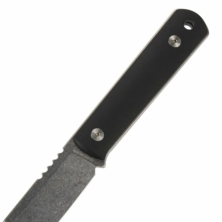 Als Ausgangsmaterial für den Richlite-Griff dient Papier, das mit Harz durchtränkt, gepresst und durch Wärmebehandlung ausgehärtet wird. Das so entstandene Material ist extrem fest und bietet einen angenehm warmen Griff. Abgerundet wird das Design durch ein mattes Stonewash-Finish der Klinge.