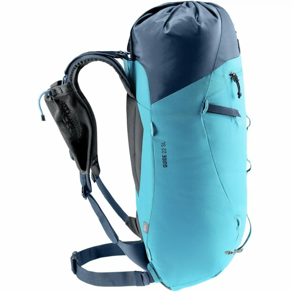 Der PFAS-freie Guide SL überzeugt durch niedriges Gewicht und zuverlässiges Handling. Robuste Materialien, hochwertige Verarbeitung, ausgefeilte Befestigungsmöglichkeiten für Pickel und Helm sowie die verstaubare Seilfixierung machen den Rucksack zum Klassiker für anspruchsvolle alpine Unternehmungen. Die Deckelkonstruktion erlaubt einen schnellen Zugriff auf das Hauptfach. Mit dem im Deckel integrierten, abnehmbaren Netz lässt sich der Helm je nach Bedarf entweder oben am Deckel oder an der Rucksackfront befestigen.