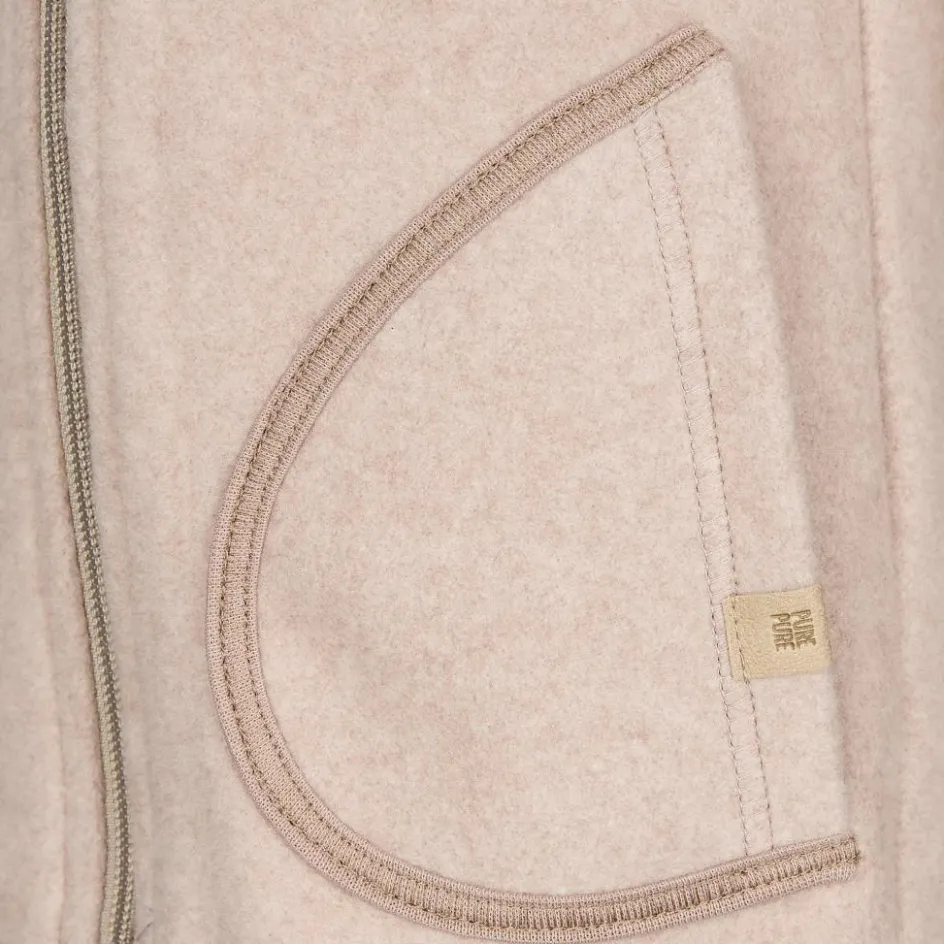 Bei dieser Jacke kommt kein gewöhnliches Kunstfaser-Fleece zum Einsatz, sondern ein Fleece aus nachhaltiger Bio-Baumwolle. Durch die Fleece-Struktur liegt die Jacke kuschelig weich auf der Haut. Außerdem wird die Körperwärme durch die Fleece-Struktur gut gespeichert. So blieben die Kleinen bei kühler Wetterlage mollig warm.