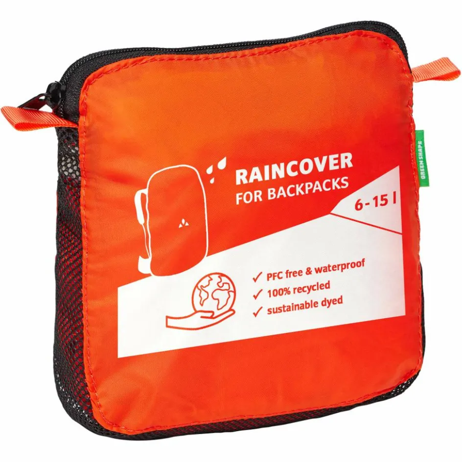 Vaudes Regenhülle für 6 bis 15 l Rucksäcke nimmt plötzlichen Regengüssen und nassen Fahrradwegen den Schrecken. Dank des Gummizugs ist die Regenhülle im Handumdrehen sicher am Rucksack befestigt. Bei der Überarbeitung der Rucksack-Regenhülle wurde besonderer Wert auf noch mehr Nachhaltigkeit gelegt: Das Material ist nun vollständig recycelt. Das Vaude Green Shape-Label steht für ein umweltfreundliches, funktionelles Produkt aus nachhaltigen und bluesign zertifizierten Materialien.