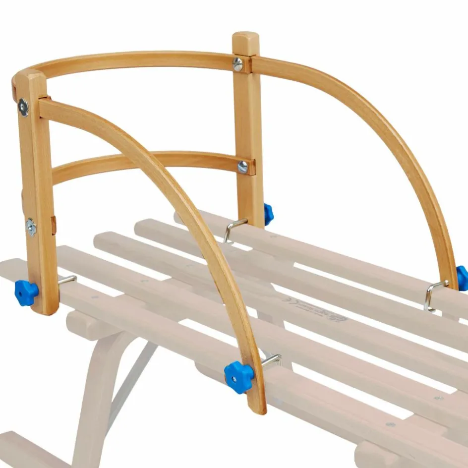 Schöne Rundlehne für alle gängigen Rodel. Mit vier Drehschrauben lässt sich die Lehne schnell am Schlitten anbringen. Gefertigt aus Buchen-Formholz mit zwei soliden Stützen aus Massivholz.