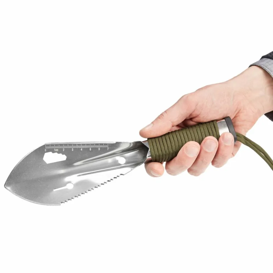 Diese kleine Handschaufel vereint 7 Funktionen in einem Tool und eignet sich damit optimal fürs Campen. Hergestellt aus hochwertigem Edelstahl. Die Lieferung erfolgt inklusive einer Gürteltasche.