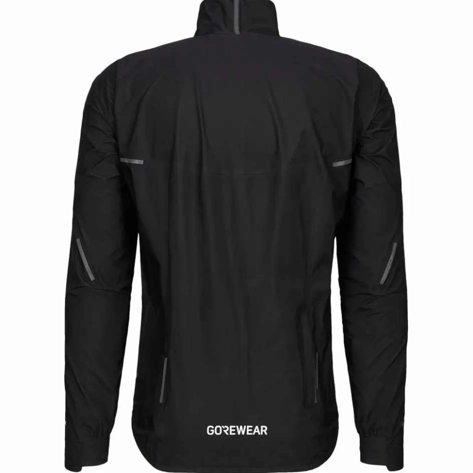 Die Spinshift Gore-Tex Jacke hat am Rücken eine RV-Tasche, in der du Riegel, Gel oder andere kleine Utensilien verstauen kannst; außerdem dient diese Tasche gleichzeitig für die Spinshift Gore-Tex Jacke als Packtasche. Die Ärmelabschlüsse sind so geformt, dass ein Teil deines Handrückens abgedeckt ist, es aber an dieser Stelle nicht zu Materialfalten kommt. Gleiches gilt für den schützenden Kragen, der ergonomisch so geformt ist, dass es nicht zu Materialansammlung kommt und sich keine Falten bilden. Damit sitzt die Regenjacke immer bestens.