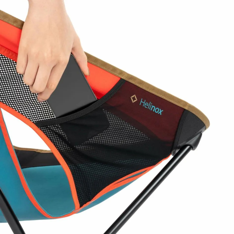 Der leichte Faltstuhl kommt mit dem Helinox (Re)Tension Design: Diese Bezug-Konstruktion fügt eine zweite Spannlinie innerhalb des Umfangs des Stuhls hinzu. Der Bezug verteilt so das Gewicht besser und gleichmäßiger auf das Gestänge. Das wirkt sich natürlich auf den Sitzkomfort aus: Das Sitzen im Helinox Sunset Chair (Re) wird noch angenehmer.