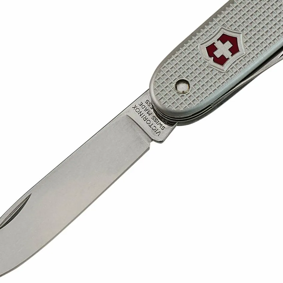 Alle Werkzeugteile des Messers bestehen aus rostfreiem Inox-Stahl (Werksbezeichnung 1.4110 – in den USA auch bekannt als 440A) mit einer Härte von 56 HRC. Es zeichnet sich durch eine mittlere Schnitthaltigkeit aus und kann auch von Anfängern leicht nachgeschärft werden. Mit etwas Übung gelingt es die Messerklinge auf Rasiermesserschärfe zu schleifen. Victorinox setzt bereits seit den Anfängen auf diesen bewährten Werkzeugstahl.