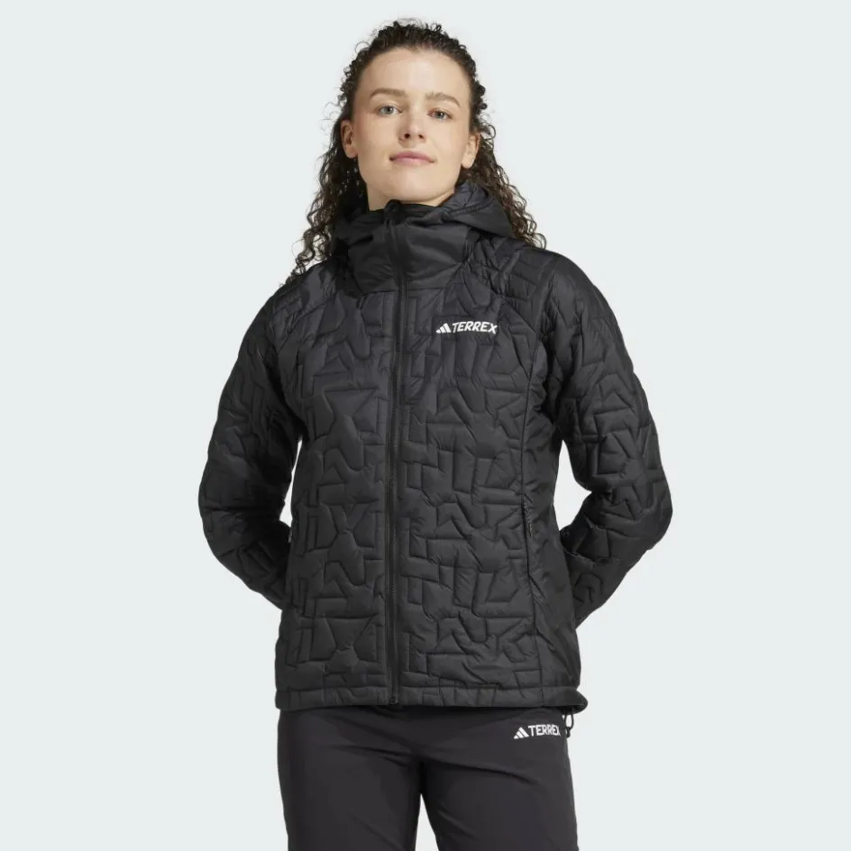 Die warme Primaloft-Isolierung dieser Jacke befindet sich in Kammern in unterschiedlicher Form und Größe, die zusammen ein schönes Terrex-Muster ergeben. Ein echter Blickfang auf dem Weg zum Gipfel!