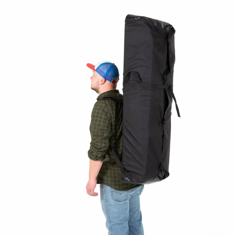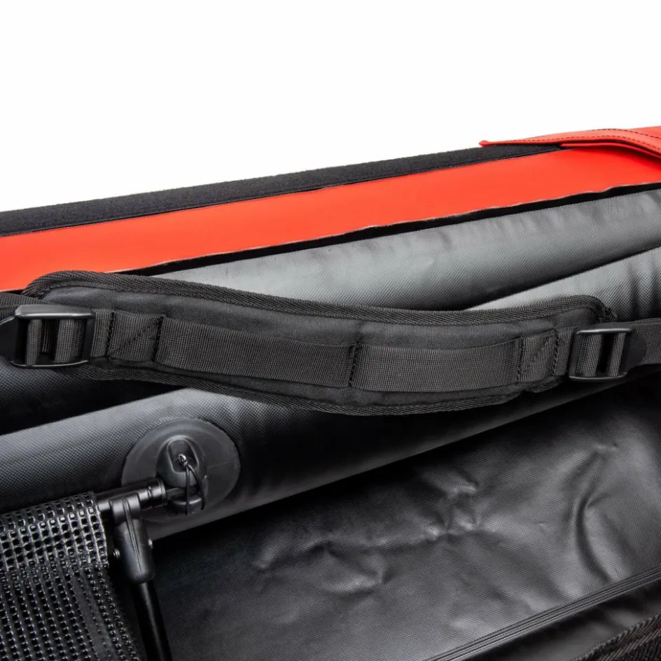 In dem mitgelieferten Packsack, der sich auch bequem als Rucksack tragen lässt, kannst du das Scubi mühelos zur Einsatzstelle transportieren! Vor Ort ist das Scubi schnell einsatzbereit: das aufs Wesentlichste reduzierte Gestänge ist fix positioniert und die Luftschläuche sind schnell gefüllt. Mit etwas Übung ist der Zweisitzer innerhalb von 10 bis 15 Minuten fahrtüchtig!
