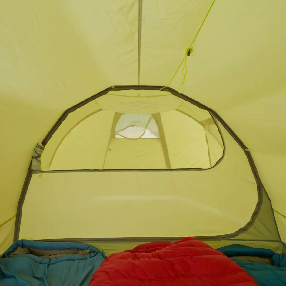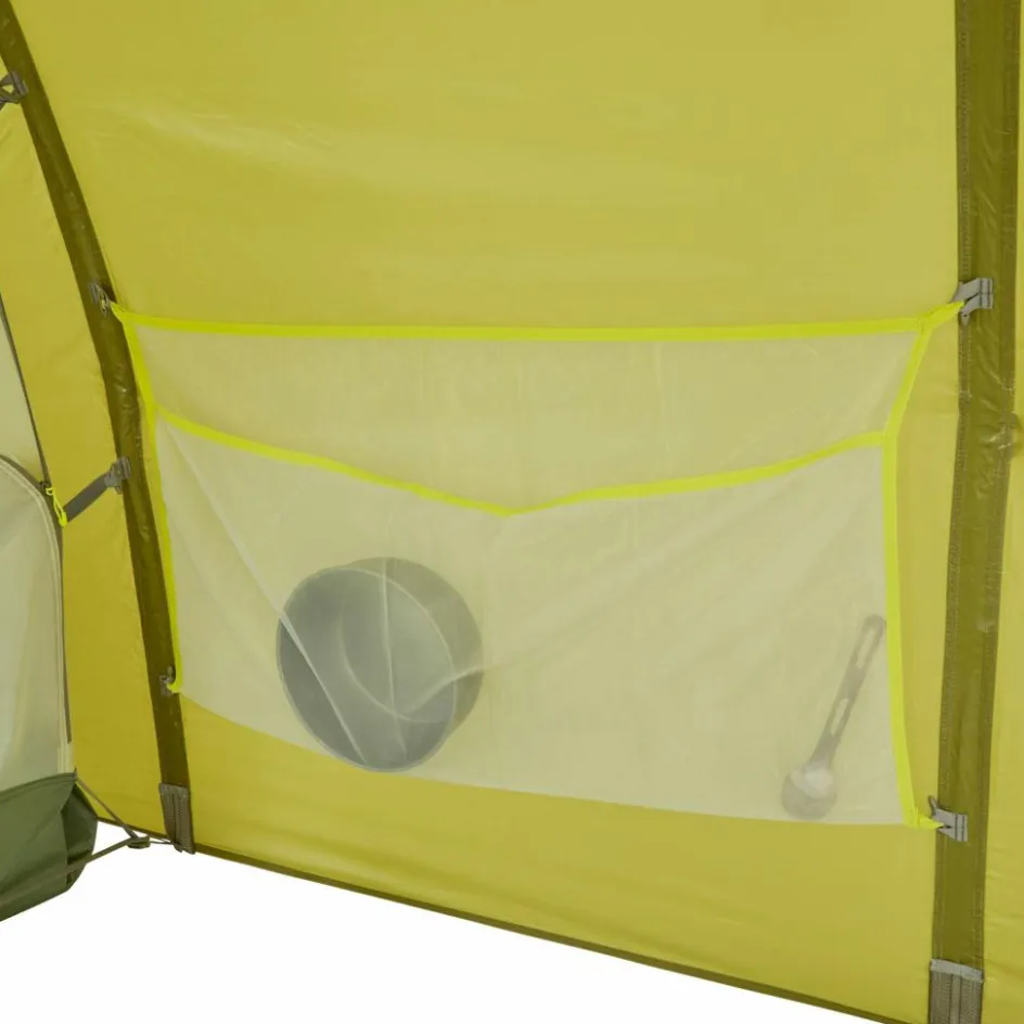 Alle Lüfter sind mit einem Moskitonetz geschützt. Den Apsislüfter kannst du zur besseren Ventilation komplett öffnen. In der Apsis befindet sich eine große Seitentasche und ein großer Gear Loft (ein Hängenetz im Zelthimmel). Dort lässt sich bequem schnell benötigte Ausrüstung verstauen. Das Innenzelt bietet mit 185 cm breite ausreichend Platz zum Schlafen. Auch umziehen und sitzen ist im 110 cm hohen Innenzelt kein Problem.